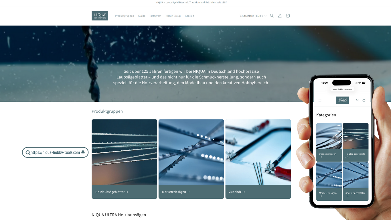 NIQUA steht seit über 125 Jahren für hochwertige Schmuckwerkzeuge „Made in Germany & Switzerland“. Wir fertigen Präzisionslaubsägeblätter, Fräser, Gravur- und Polierwerkzeuge sowie Zangen für Goldschmiede, Juweliere und Steinfasser. Unsere Produkte überzeugen durch Qualität, Langlebigkeit und höchste Präzision – weltweit geschätzt in über 140 Ländern. Für professionelle Schmuckbearbeitung auf höchstem Niveau.